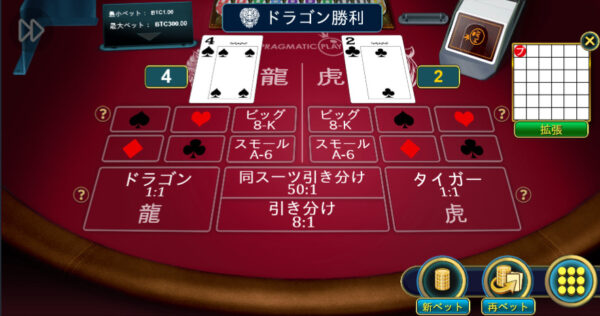 ドラゴンタイガーは、バカラの簡易版と言われています。