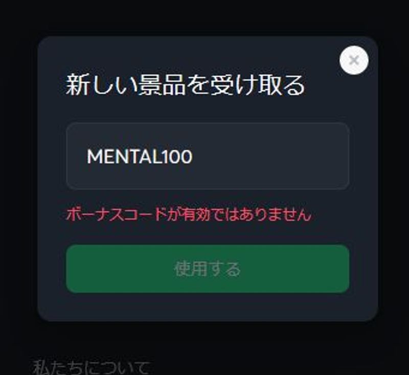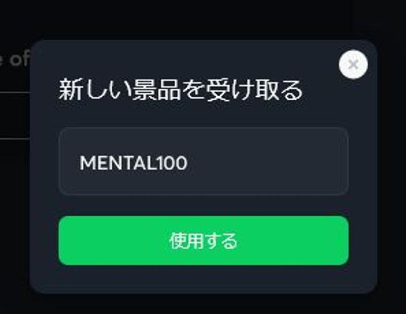 ボーナスコードを入力する欄に「MENTAL100」を入力し、使用するをクリックします。