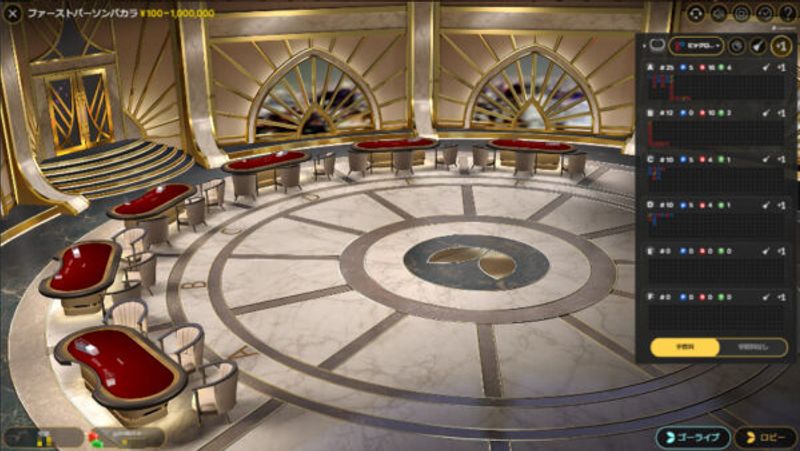 [jin-fusen2 text="Evolutionのバカラのロビー画面"]