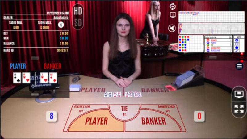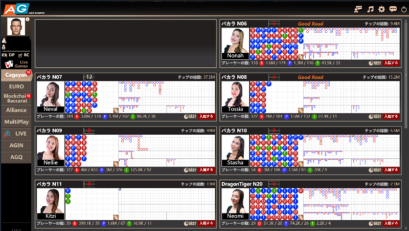 オーソドックスなバカラ、手数料なしのバカラ、ドラゴンタイガーをプレイできます。