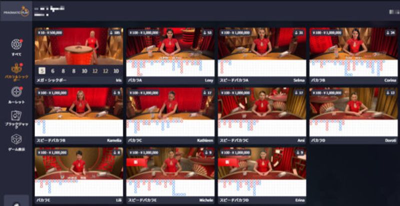 [jin-fusen2 text="Pragmatic Playのバカラのロビー画面"]