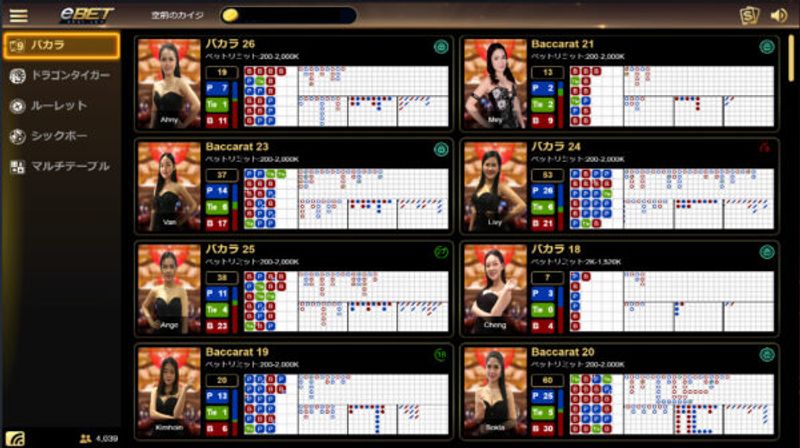 手数料なしのバカラや、スクイーズが楽しめるバカラ、ハイローラー向けに高額ベットができるバカラ、ドラゴンライガーなどがあります。