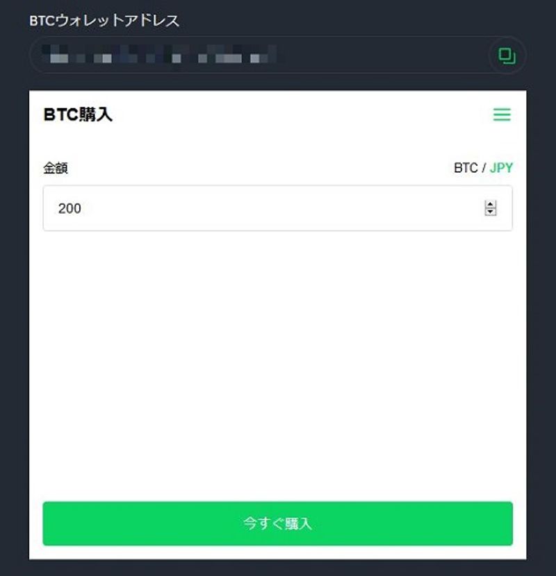 ビットコイン通貨を選択し、購入したい金額を半角英数字で記入後、「ビットコインを購入する」ボタンをクリックします。