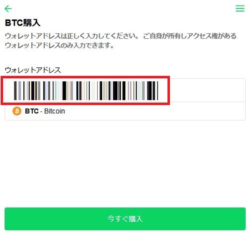 ビットコイン通貨を選択し(mBTCもしくはμɃ)、購入したい金額を半角英数字で記入後、「ビットコインを購入する」ボタンをクリックします。