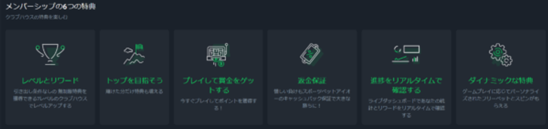 には、VIP制度とよく似た「クラブハウス」と呼ばれるロイヤリティプログラムがあります。クラブハウスはもともと、仮想通貨プレイヤー限定のメンバー特典でしたが、2021年より日本円でプレーしてもポイントが貯まる仕様に変更されました。