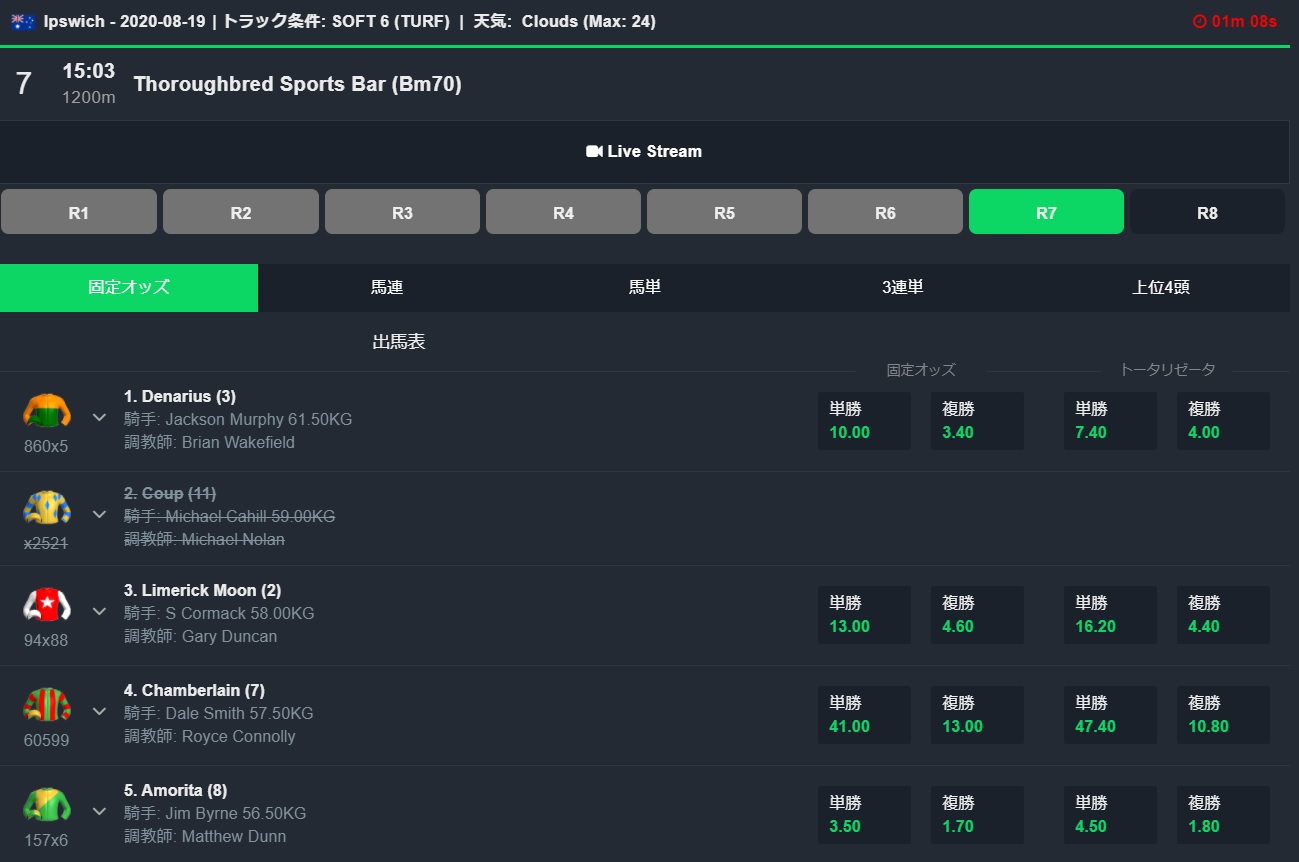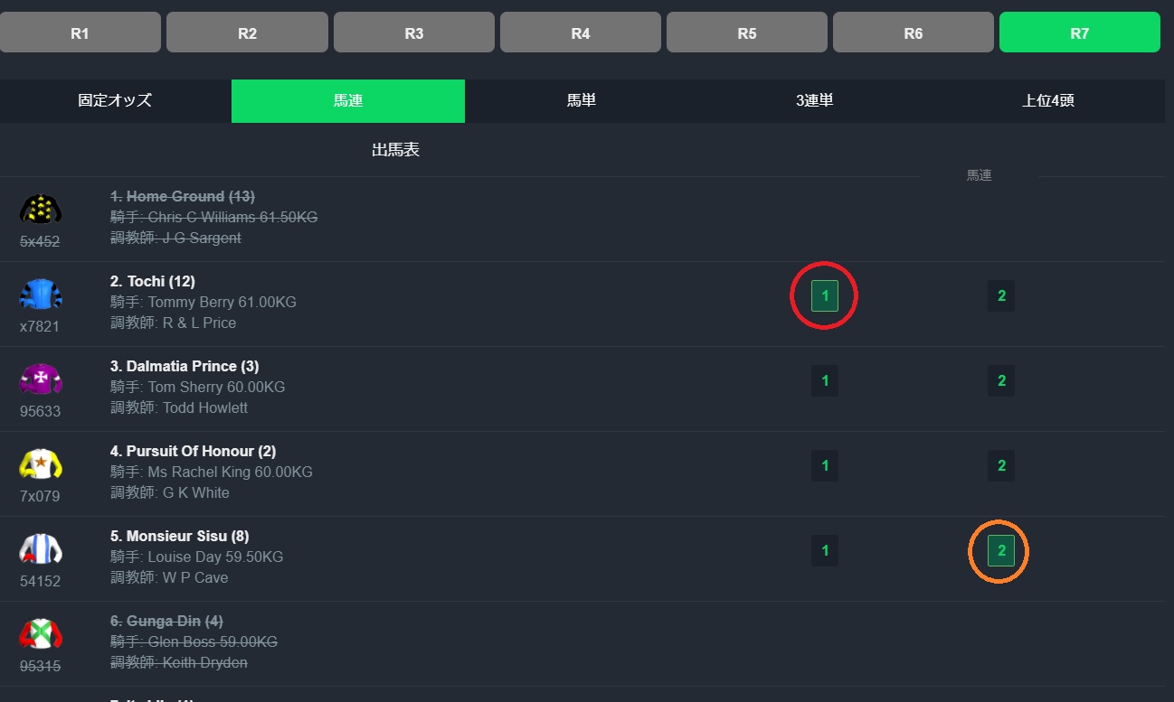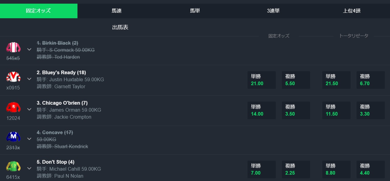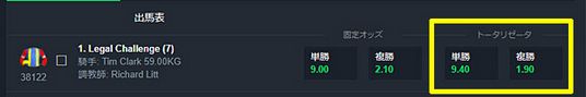 黄枠の固定オッズとはブックメーカー式のオッズで、通常のスポーツブックと同様にレース前にオッズが変更されても賭けた時点の倍率で払い戻しされます。