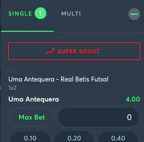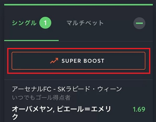 マーケットを選択しベットスリップを開いたら、「スーパーブースト」をクリックしてブーストを有効にしてください。