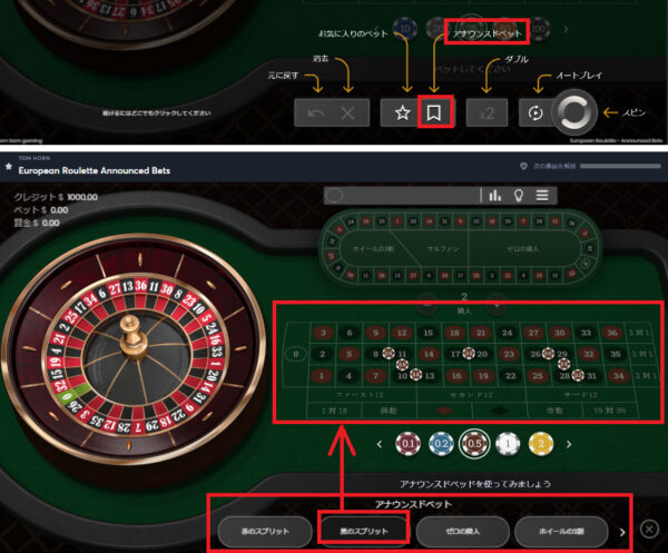 TOM HORNで遊べるルーレットは、「European Roulette Announced Bets」の1つです。