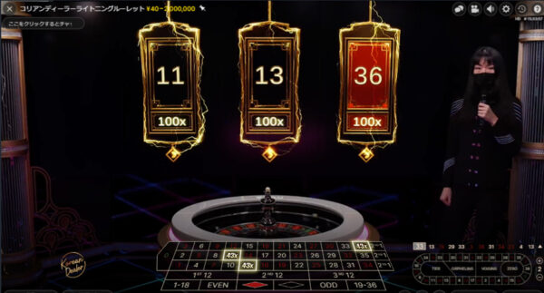 演出やルールはライトニングルーレットのままで、通常バージョンとの違いはディーラーだけ。こちらは韓国のディーラーがゲームを進行をします。